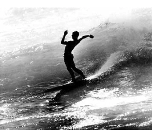Photographie vintage de John Severson: « Kemp Aaberg at Rincon 1959 ».