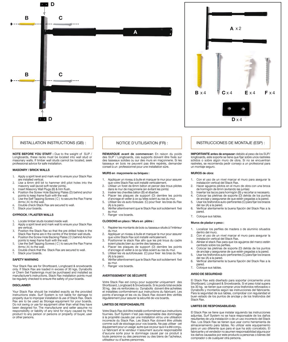 Ce support Mural SURF SYSTEM Double Rack Surfboards/Longboard/SUP peut être fixé à la verticale ou à l’horizontale de manière à exposer vos planches de surf comme vous le souhaitez.