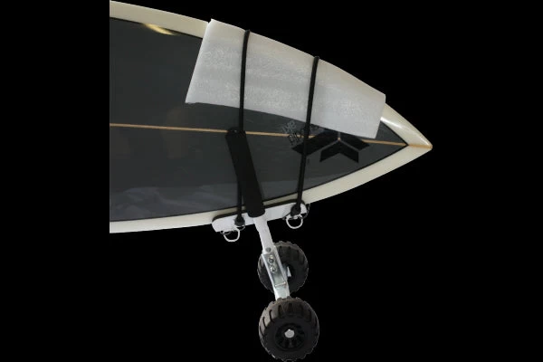 Trolley surf: Système rendant le transport des longboards et SUP paddleboards plus facile. Support de planche équipé de 2 grosses roues avec pneus et chambres à air.